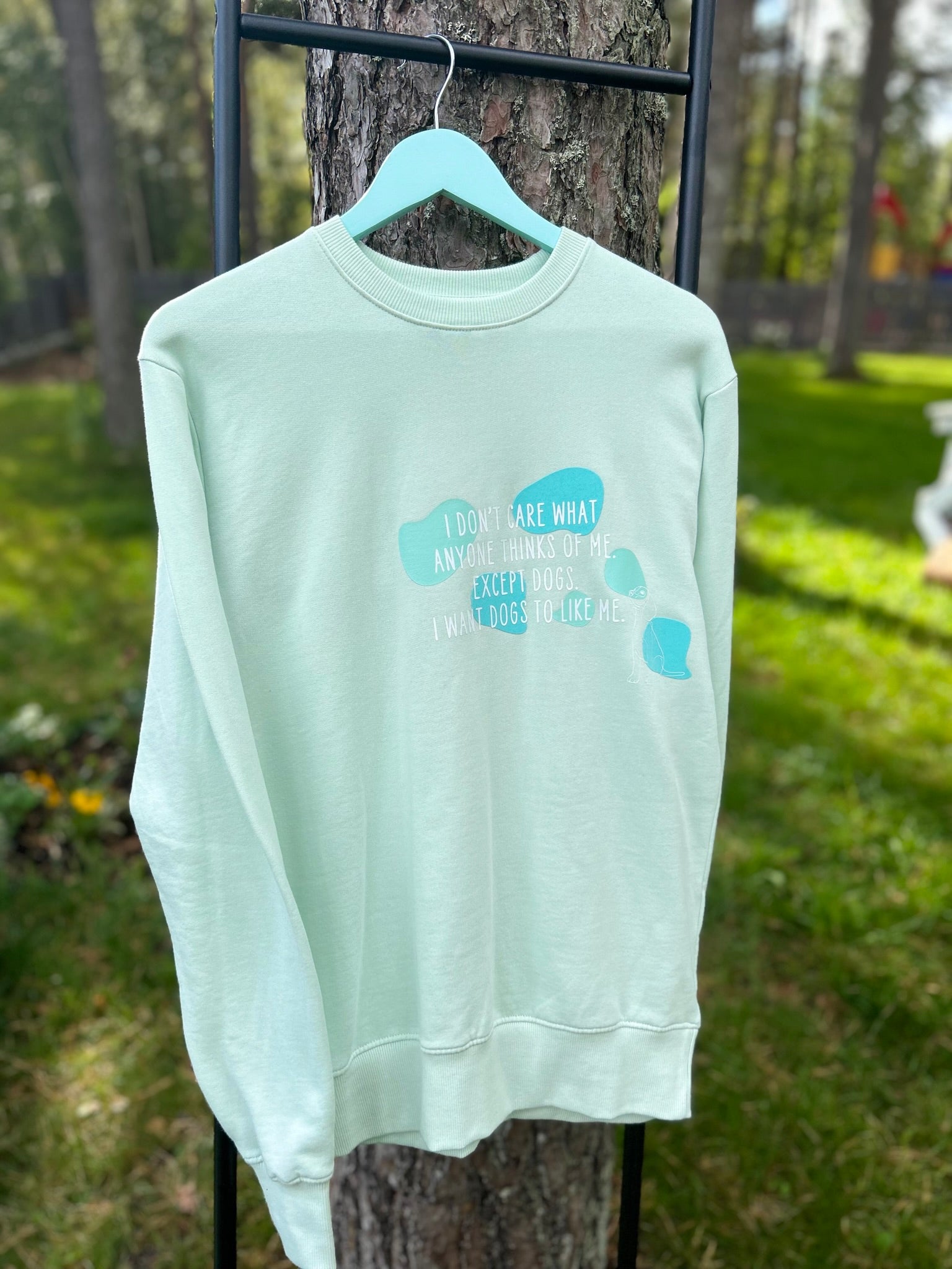 Pusa kirjaga "I don't care what anyone thinks of me. Except dogs. I want dogs to like me".