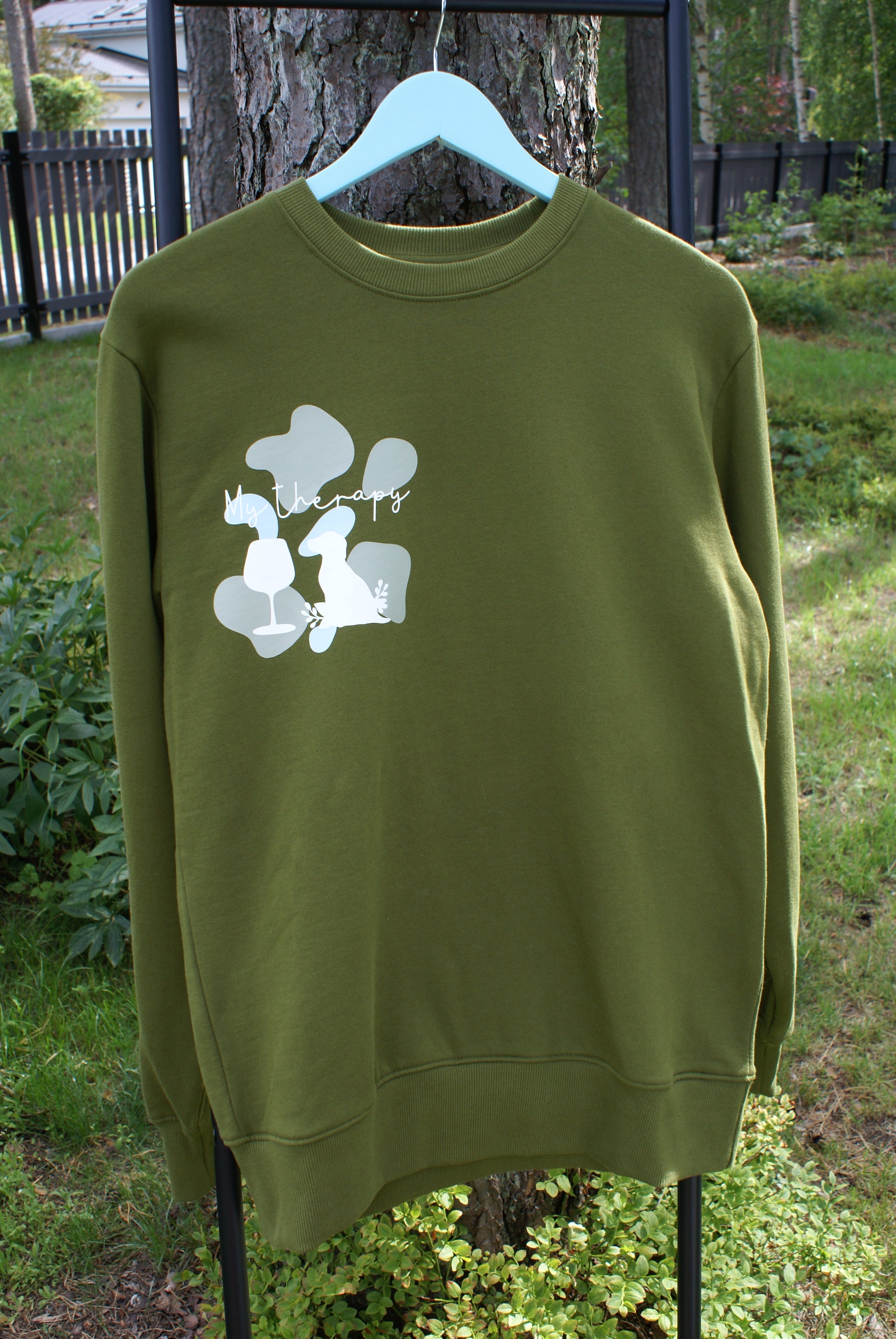 Pusa kirjaga "My therapy". 100% ökoloogilisest (organic cotton) puuvillast valmistatud pusa, millele on käsitööna loodud ning lisatud disain. Valmistatud väikeste partiidena, et tunda end enda pusaga eriliselt!