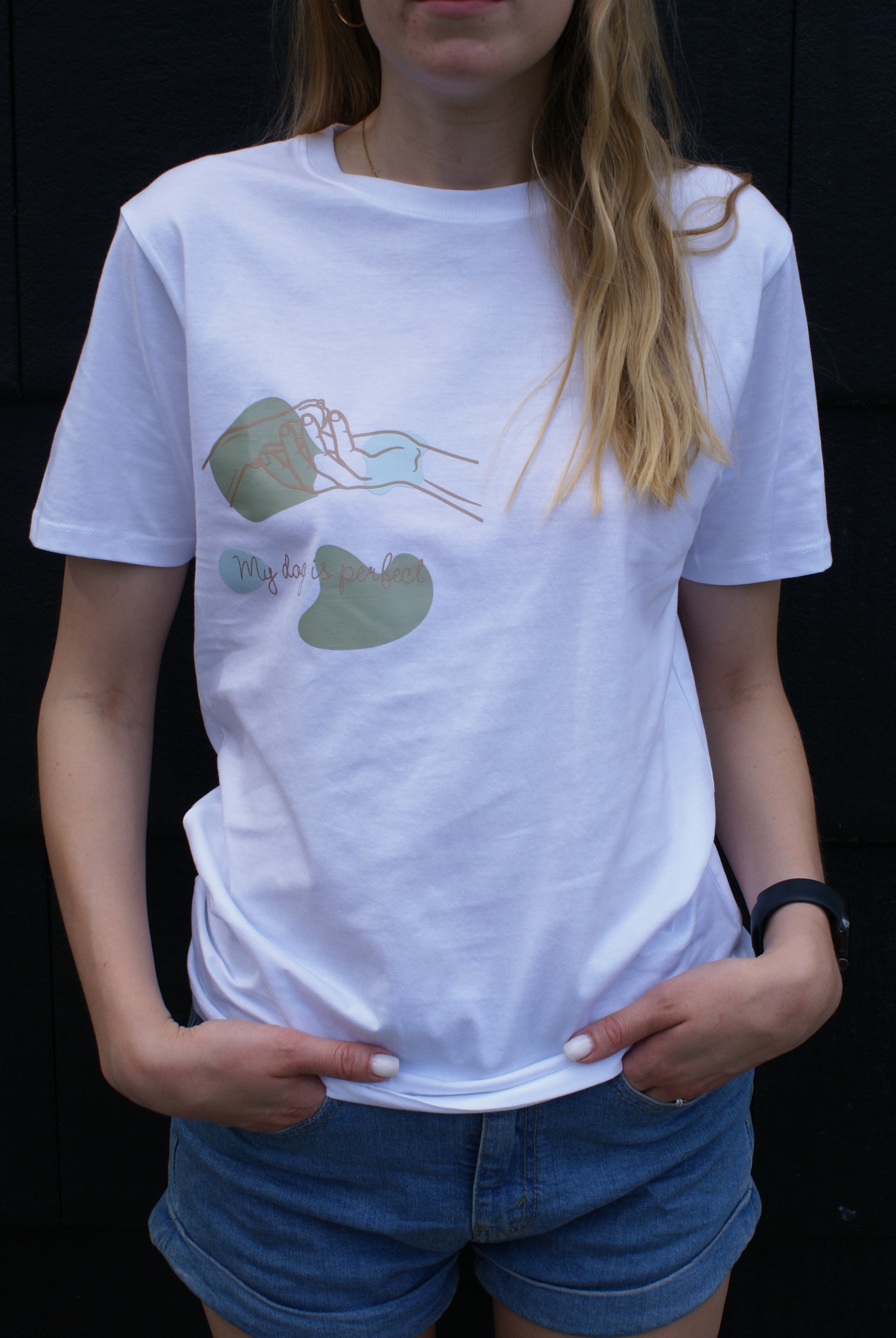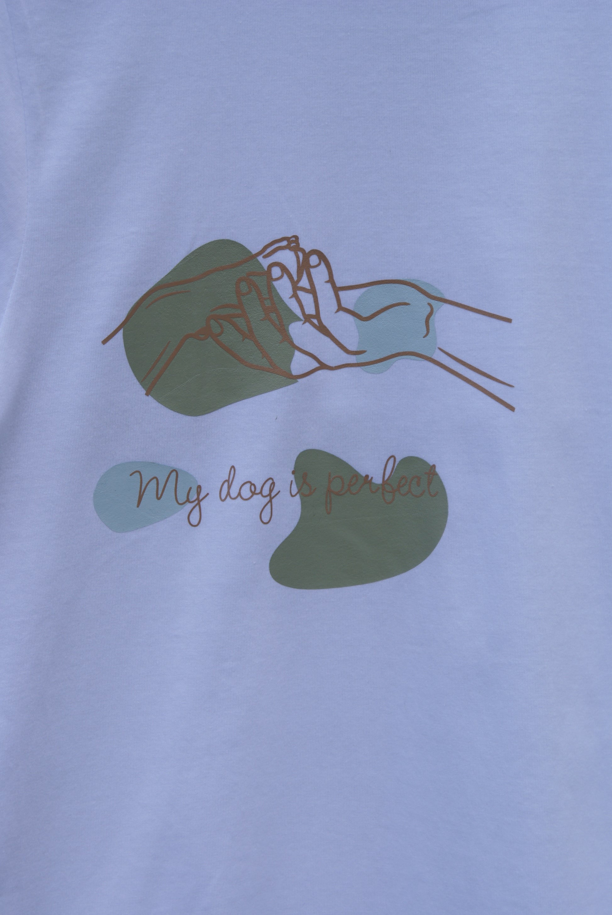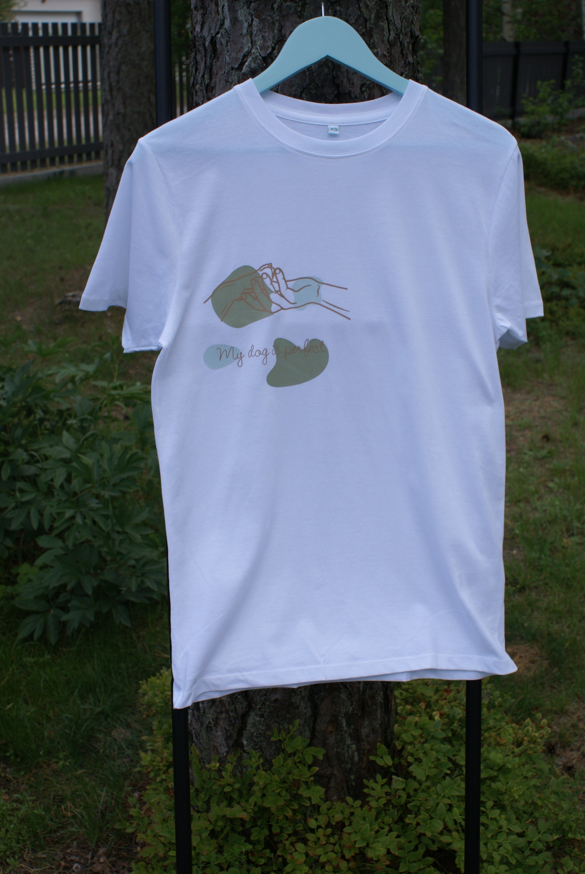 T-särk kirjaga "My dog is perfect". 100% ökoloogilisest (organic cotton) puuvillast valmistatud t-särk, millele on käsitööna valmistatud ning lisatud disain. Valmistatud väikeste partiidena, et tunda end enda t-särgiga eriliselt!
